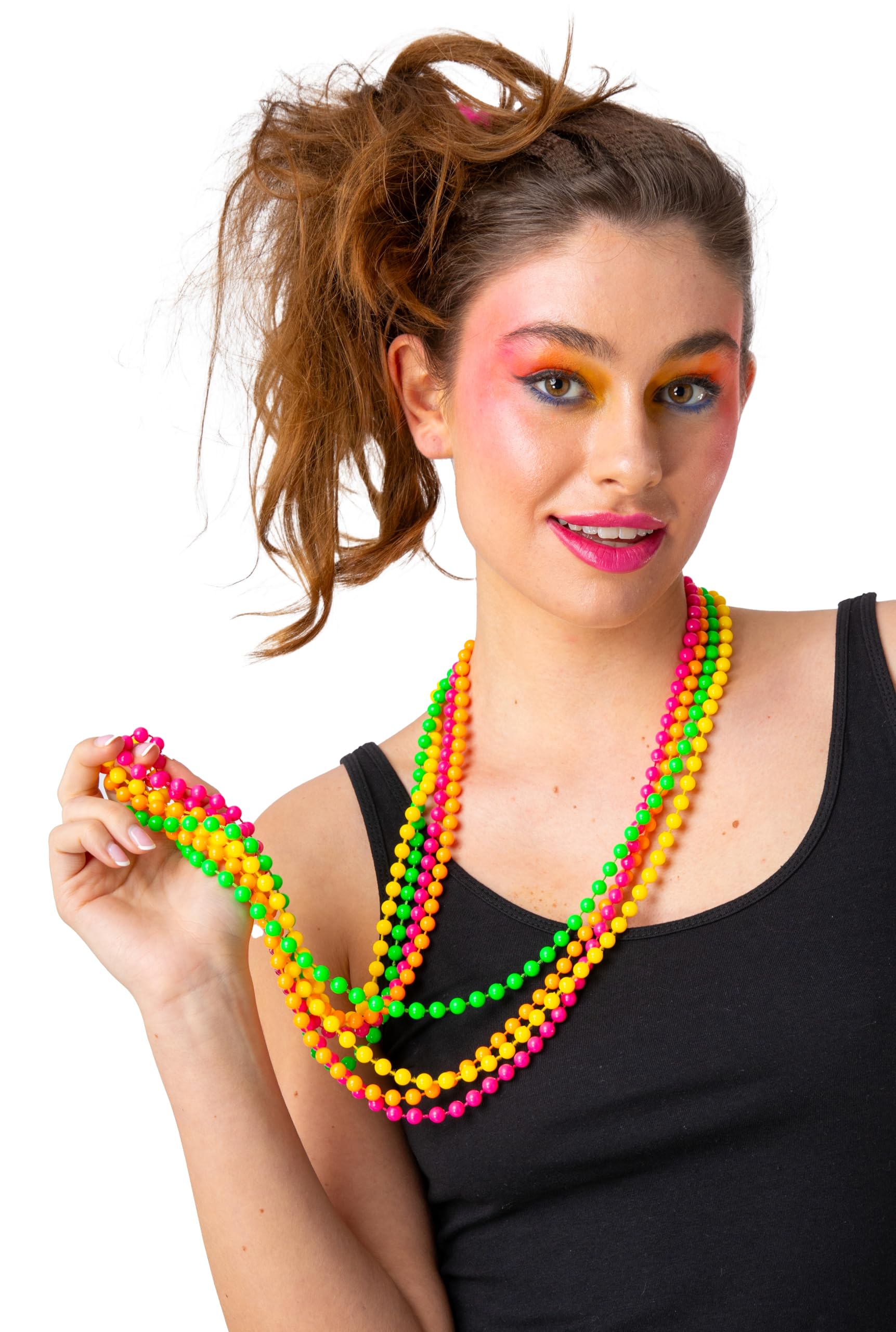 Pack de 4 collares de cuentas fluorescentes. Brilla bajo luz ultravioleta.
