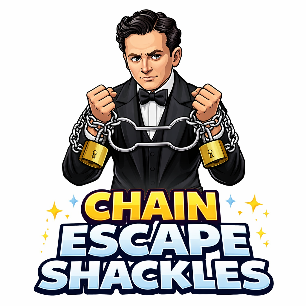 Finalmente, al darse cuenta de que el juego ha terminado, saca ambas manos de debajo de la tela para mostrar que efectivamente ha escapado. Le devuelve los grilletes al espectador. Todo puede ser examinado una vez más.