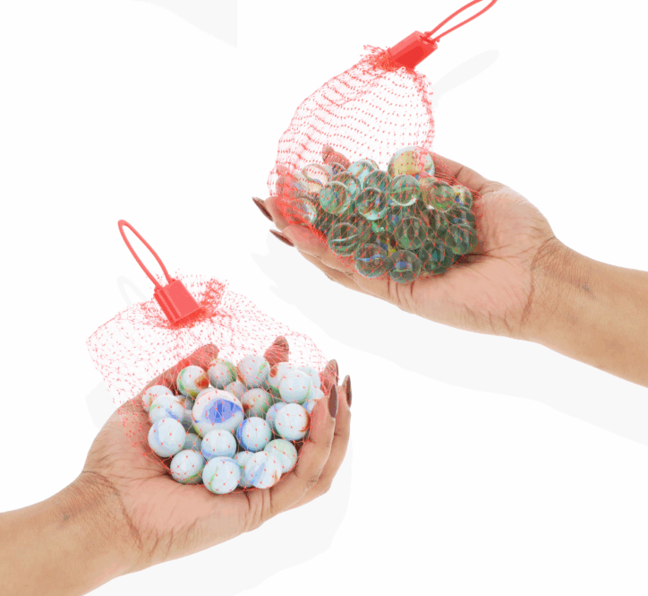 Cada bolsa contiene 49 canicas 'normales' y 1 'tiradores' para juegos