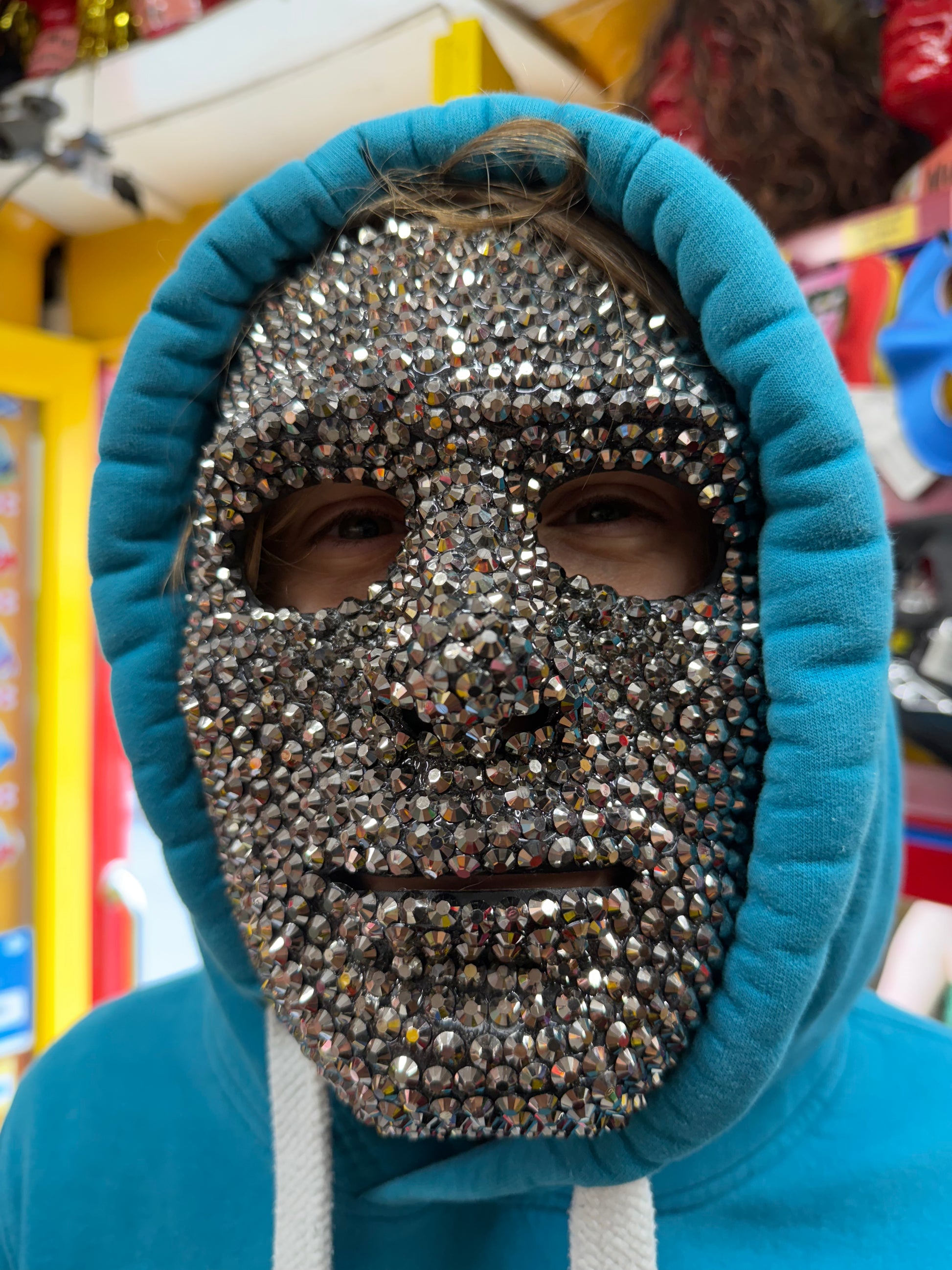 This shiny, eye-catching mask adds a fun, futuristic twist to any costume or party.