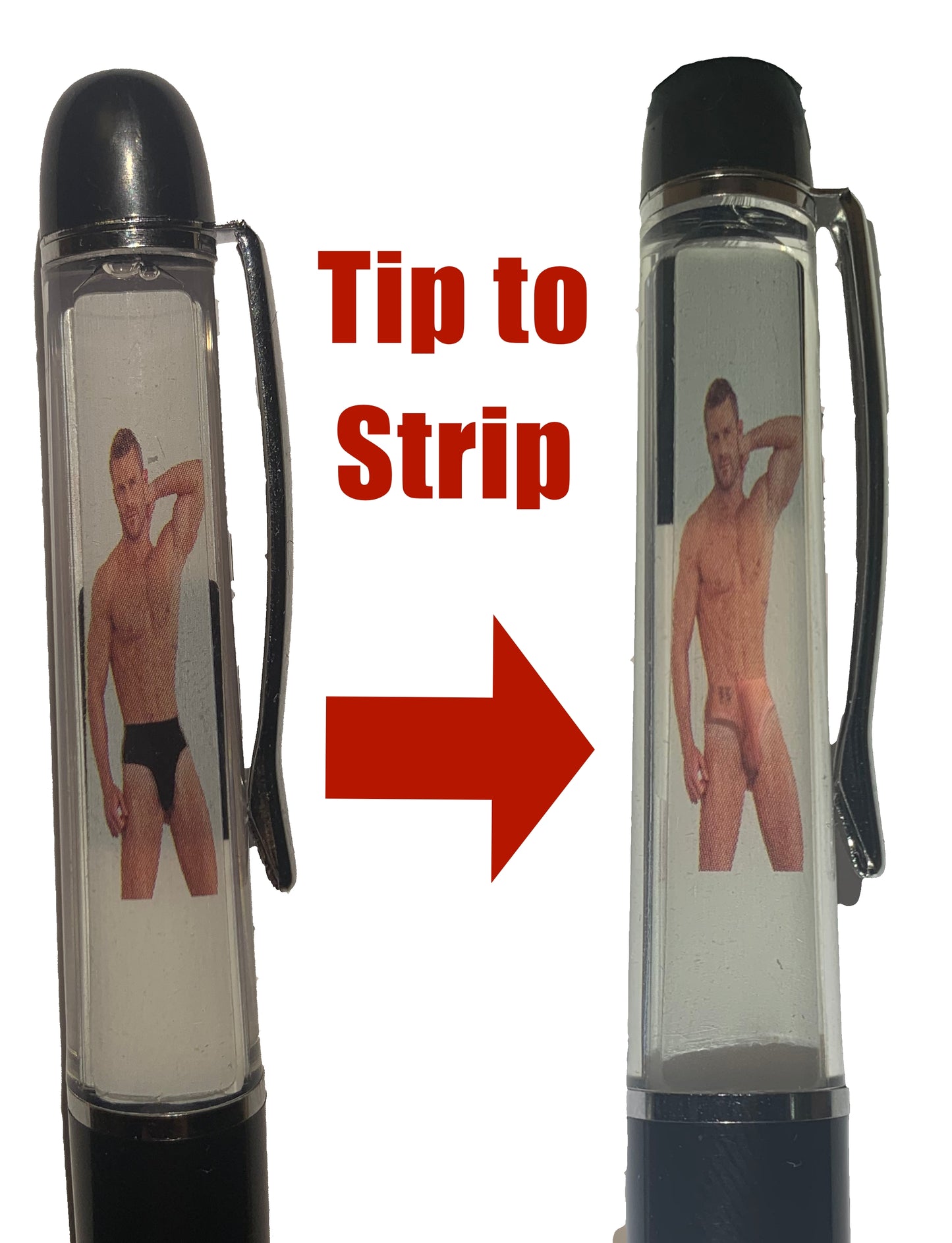 This Pen has a little window showing a hunky man in it! But there is a further surprise- tip the pen upside down and watch as the man’s clothes slip away revealing his naked body!